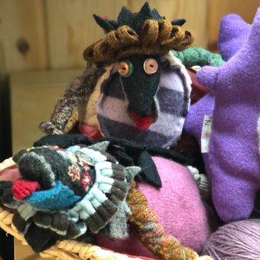 A large sock monkey, made from up-cycled socks and wool scraps. Large Sock Monkeys are made to order for $50.